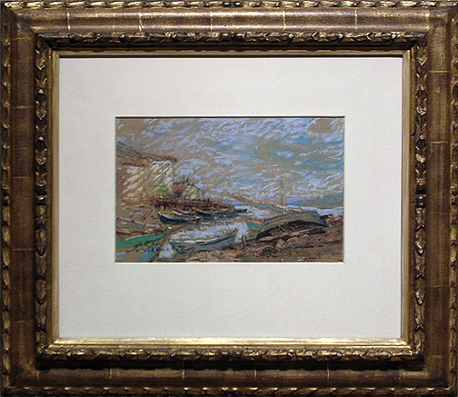 Even though Pégurier traveled to Holland, the Basque country, Venice and Switzerland, he always seemed to direct the subject of his landscapes back to the Provence region. Starting in 1884 he participated in the Salons des Artistes Français. On the advice of Signac, starting in 1886 he also exposed at the Salons des Indépendants and the Salons d’Automne in Paris. A retrospective of his work was held in the Musée de L’Annonciade in Saint-Tropez in 1981. Several of his pastel works are in the collection of the Musée de L’Annonciade. His work is also at the Musée Chéret in Nice and the Musée d’Orsay in Paris.