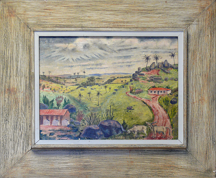 Original oil painting on board. Hand signed and dated by the artist "Biddle, 1942" lower left. In very good condition. George Biddle was an important 20th century American painter, drawing master, printmaker, and muralist whose major creative activity spanned a fifty-year period from 1914 to 1964. During his lifetime he was counted as one of the leading artists in the United States. His influence in the vanguard and later development of the "WPA" and "American Scene" genres during the 1930's and 1940's was of particular importance during this period in American art. Biddle's paintings, drawings, and prints are held in many museum collections worldwide, including: Metropolitan Museum of Art, National Gallery, Museum of Modern Art, Whitney Museum of American Art, Boston Museum of Fine Art, Pennsylvania Academy of the Fine Arts, Art Institute Chicago, and Los Angeles County Museum of Art. During Biddle's career, he received more than 100 one-man exhibitions in Europe, Mexico, Japan, India and the United States. |