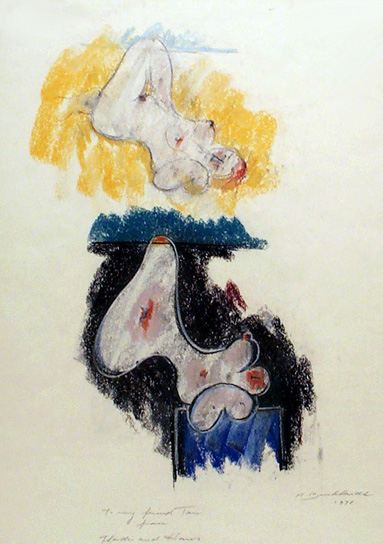 Original pastel drawing on paper. Hand signed and dated by the artist, "H. Burkhardt 1978", lower right. Dedicated lower left, "To my friend Tom from Thordis and Hans." In excellent condition. Sheet size: 24" x 18"