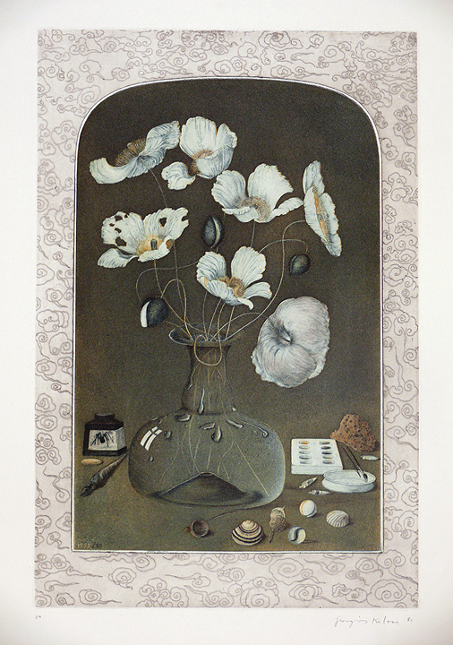 Georgios Kilios Vase with poppies, inks, shells, 1981 Inventory # 52032