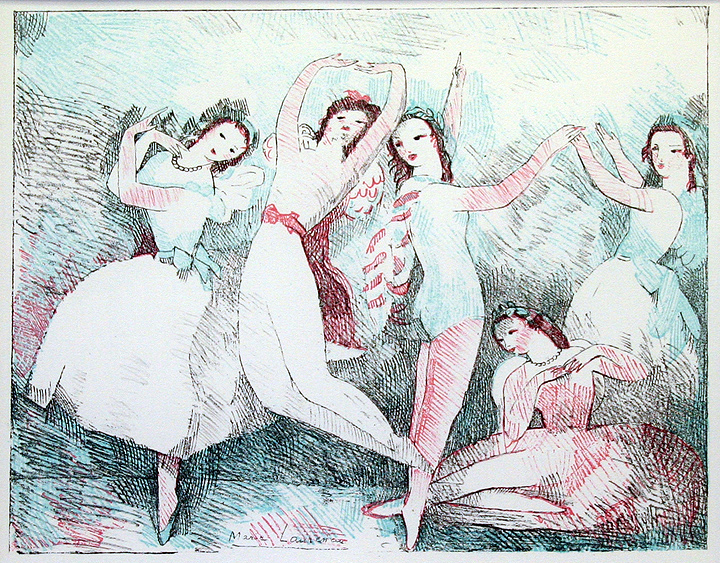 Born on October 31, 1883 in Paris, the young Marie Laurencin was sent to Sèvres by her mother in 1901, where she got familiar with porcelain painting. Her education continued at a school in Paris, followed by the Humbert academy, where Marie Laurencin got acquainted with Georges Braque. She soon met Picasso and Guillaume Apollinaire, who supported her from this time on and integrated her in discussions about art theory, which soon lead to Cubism. The artist's own creative work, however, remained untouched by such theoretical demands; it shows mainly lyrical motifs like graceful, dreamy young girls in pastel coloring and soft shading. This color-sensitive inventiveness leads to a variation of repetitions of form and motifs. The influence of Persian miniature painting and Rococo art are undeniable in Laurencin's works. In 1907 Marie Laurencin gave her debut at the "Salon des Indépendants," followed by a large exhibition at Barbazanges' in 1912 and at P. Rosenberg's in 1920. From 1924 Laurencin also worked on designing stage sets. She produced stage design for Diaghilev's "Ballets russe" and the set for the "Comédie Francaise" in 1928. She also illustrated books, such as André Gide's "La Tentative Amoureuse" and Lewis Caroll's "Alice in Wonderland."