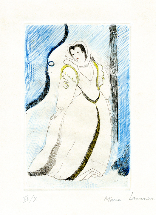 Original in colorsin colors on wove paper with full margins. Hand signed in by the artist "Marie Laurencin" in pencil, lower right, and numbered 6/10 in Roman numerals, lower left. From the third state of three. In very good condition, framed with conservation materials.