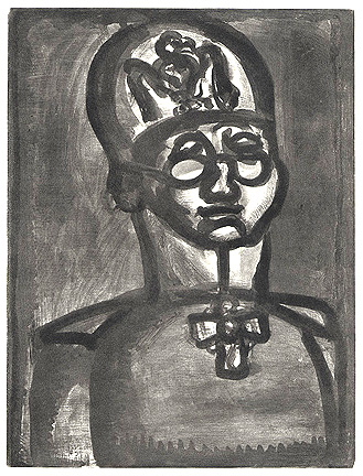 Original aquatint, burnisher, scraper, drypoint and roulette over heliogravure printed in black ink on heavy laid paper with the Ambroise Vollard and Arches watermarks. Signed and dated in the plate: "1922 G.R." at lower left (G.R. printed backwards). An excellent impression of the état définitif from the edition of 450. Plate LI from the Miserere series. Commissioned by Ambroise Vollard; published by the Société de L'Etoile Filante, Paris, 1948; printed by Jacquemin, Paris. The plate has been canceled.
